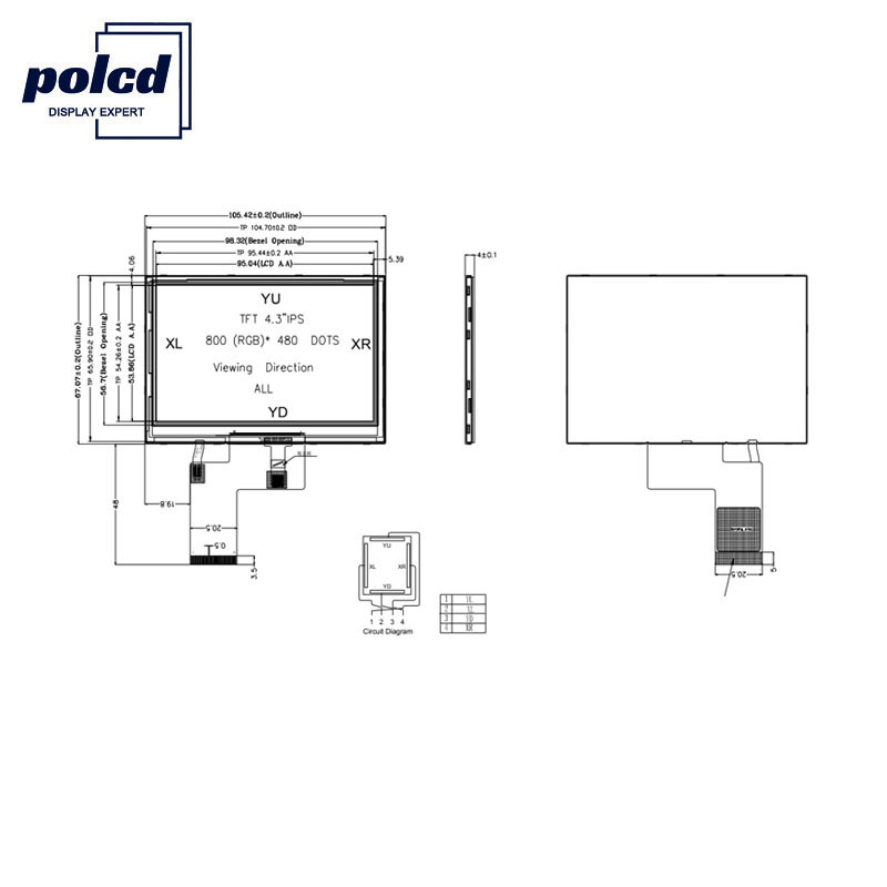 لوحة اللمس LCD هذه عبارة عن شاشة عرض بلورية سائلة (LCD) ذات مصفوفة نشطة بالألوان (TFT) تستخدم السيليكون غير المتبلور TFT كجهاز تبديل.إذا كان منتجك يتطلب حجمًا 4.3 بوصة ، فإن شاشة LCD الخاصة بنا هي ما تحتاجه تمامًا.قم بتحسين تصميم منتجك عن طريق إضافة منتجنا بدقة 480 * 272.قام قسم مراقبة الجودة بقياس الإنارة 300 شمعة تحت التشغيل العادي.